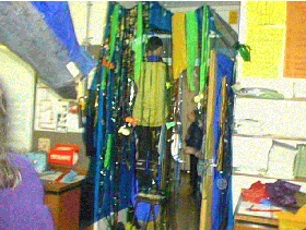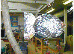 Mrs. Clift has organised an activity called JAWS for environment week. Some Pool School students have been having a fun filled week of art and sharks. On the 28.6.00 these students and Mrs. Clift visited the aquarium at Plymouth, which they all seem to of enjoyed. In the meantime they made paper mache sharks, shark mobiles, and an excellent tunnel at the entrance to their classroom with cardboard fish, and seaweed made out of coloured plastic strips, hanging down from it.