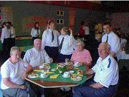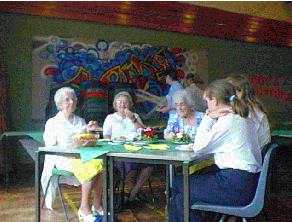 The 'It's a racket' group, with Mrs Smith, is enjoying a taste of the Wimbledon life. Picture the scene, a short cut lawn, a huge crowd, strawberries and cream, and Cliff Richard singing!